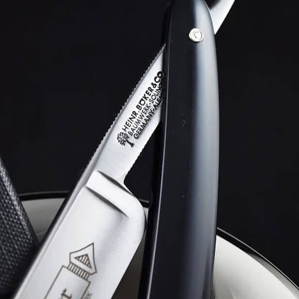 The best choice for entry-level Boker King Cutter straight razors 🙌 Handmade in 5/8-inch specifications, made of the best Solingen straight razor steel. The handle is inlaid with the Boker logo in nickel silver and is made of moisture-resistant synthetic material.