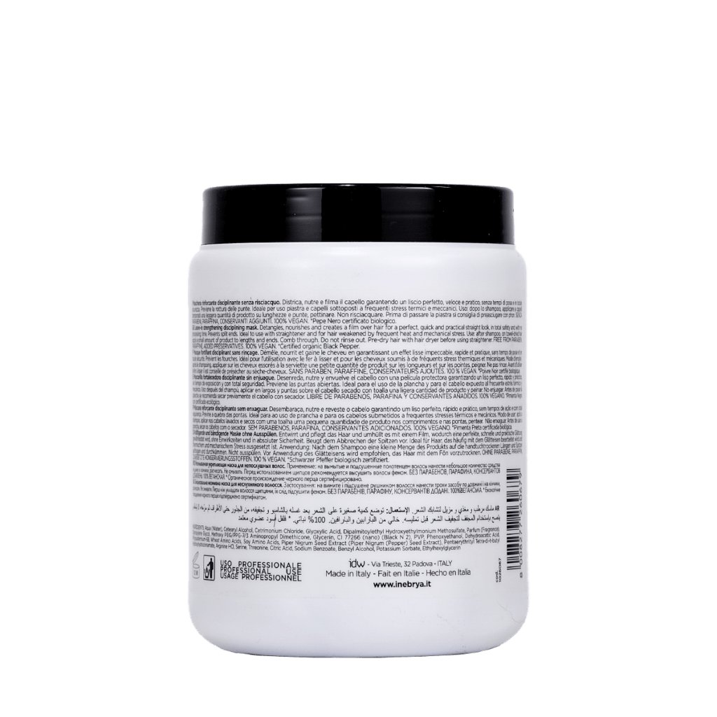 100% organic black pepper provides the texture with a characteristic dark color and has antioxidant and strengthening properties, while the Heat Protection System provides deep protection against heat sources before and during the styling stage.