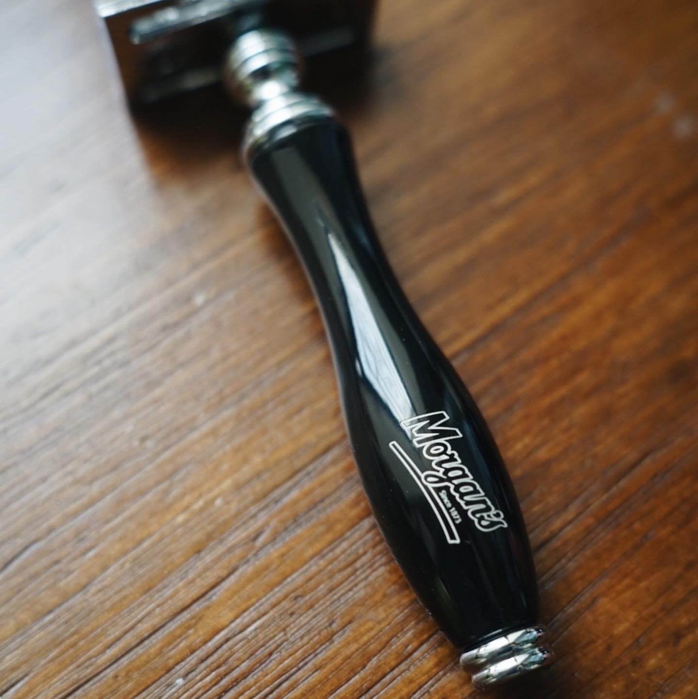 Classic, old-school style, this beautifully crafted, high-quality stainless steel razor features a ceramic handle stamped with the Morgan's logo for a smooth shave.