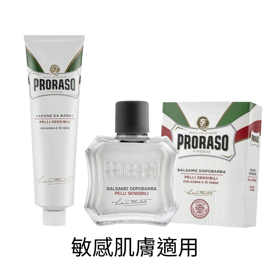 Proraso white plant-derived green tea classic anti-allergic shaving cream aftershave set