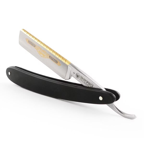 Dovo 4580 是德國 Dovo 旗下 PRIMA 頂尖系列的高品質碳鋼直剃刀。刀片採用 1.2210 號碳鋼(銀鋼),經高溫淬火及回火處理,硬度達約 61 HRC,兼具鋒利度與韌性。其「全凹磨」刀身設計,搭配 5/8 英寸圓形刀頭,操作靈活精準,尤其適合處理鼻周、下巴等細部鬍鬚。